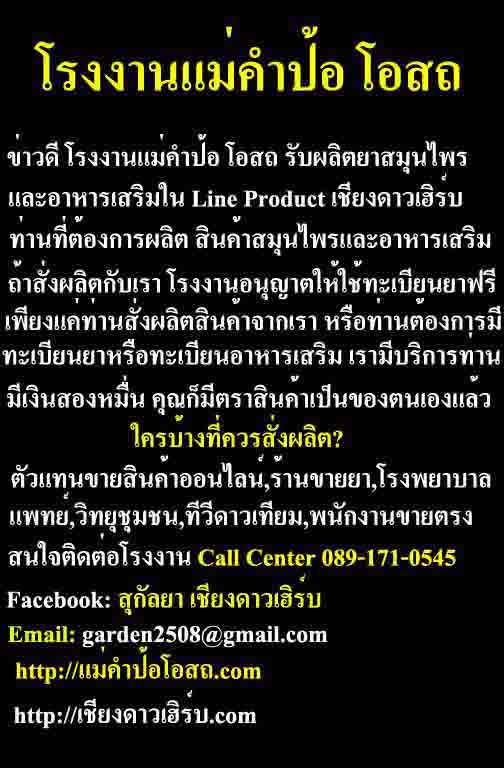 ถ้าท่านสนใจ สินค้าสมุนไพรไทยของเรา ติดต่อได้ที่